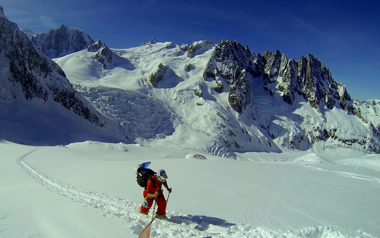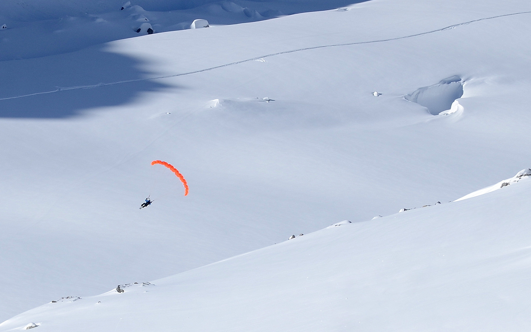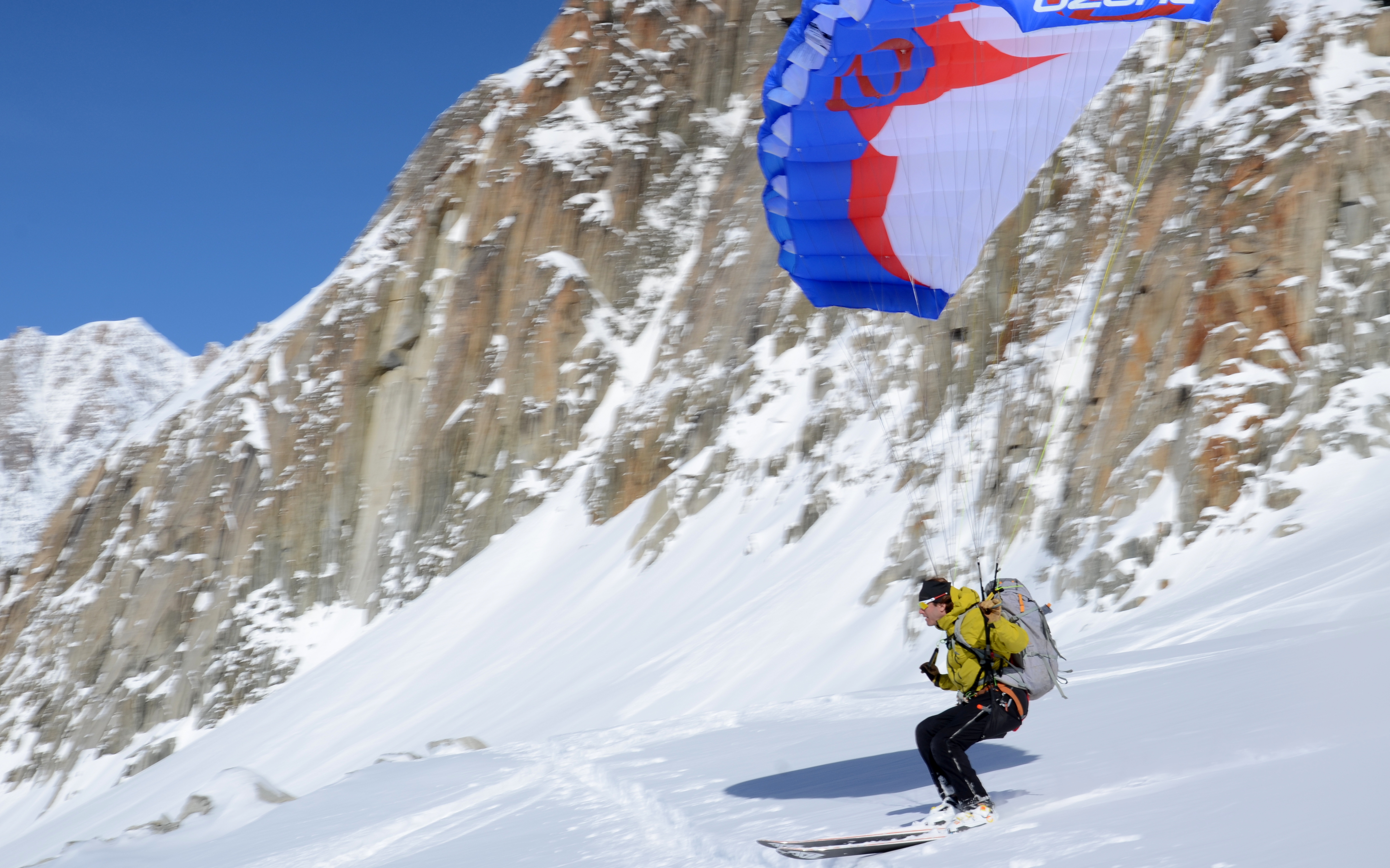 So, speedflying is basically paragliding, but with a wing that has just a fraction of the surface area. The result of this is that a) it weighs next to nothing, and b) you go really fast. Basically the perfect combo for descending off a mountain that you’ve just climbed. The speedwing can be launched on foot, or on skis; the latter allowing you to rapidly descend terrain via a combination of skiing and flying. Awesome!