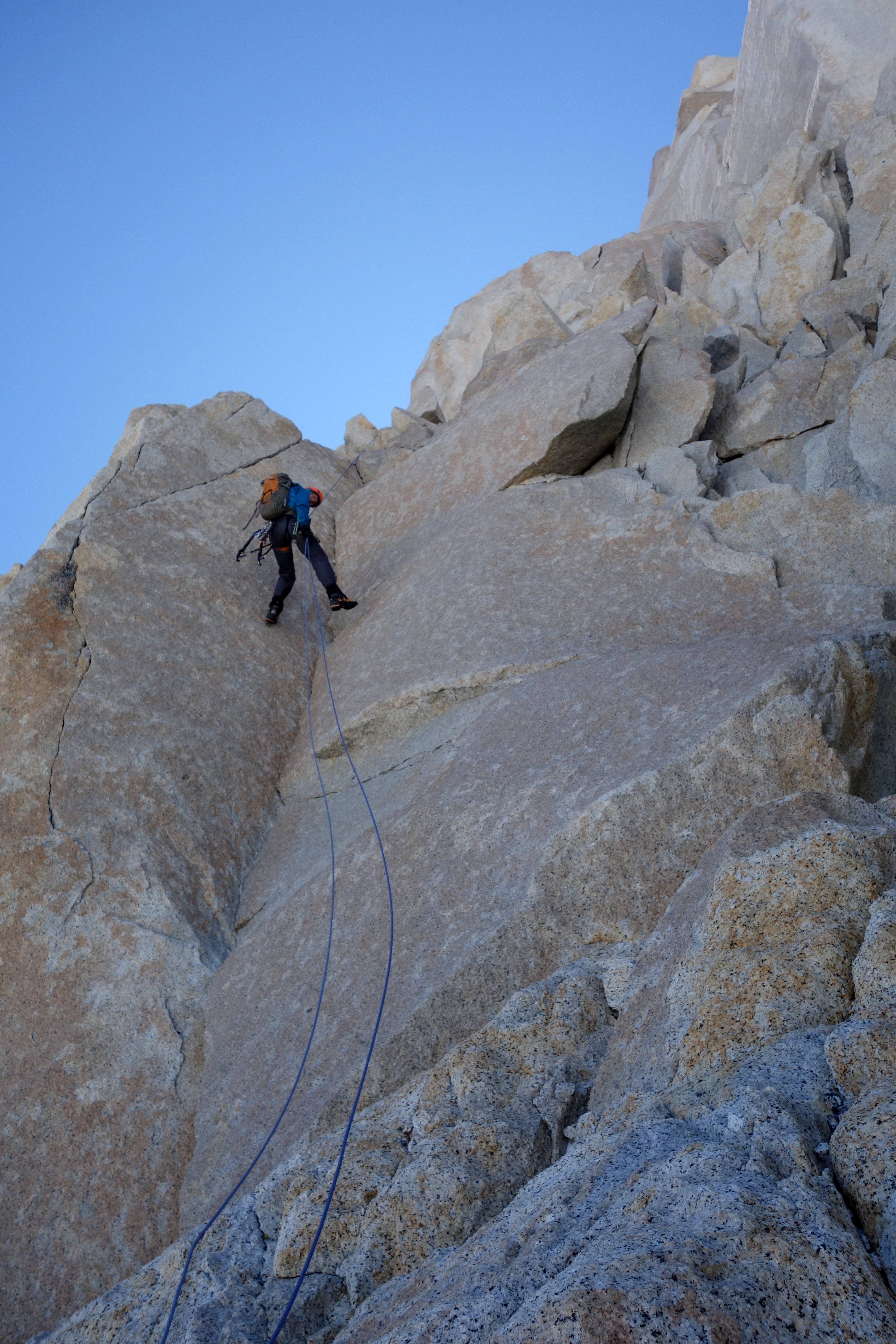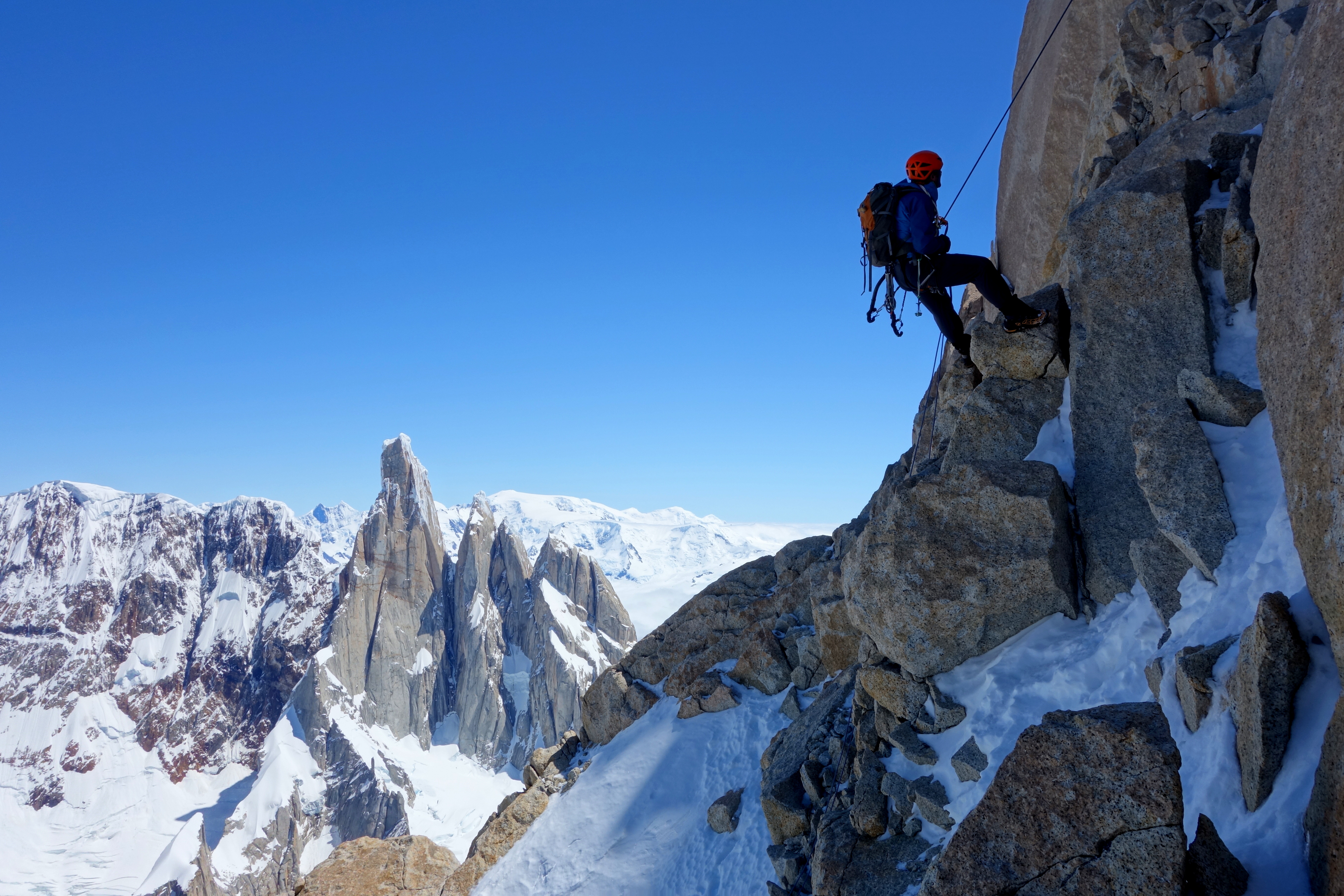 Retreating back down the line we’d just climbed gave us a fantastic opportunity to properly take in the phenomenal geology that surrounded us which we’d only been vaguely aware of on our ascent in the darkness. The Fitzroy mountain range truly is one of the natural wonders of the world and we were both chuffed to bits to have had the opportunity – over just 6 days – to get out not once but twice and experience it in all its glory.